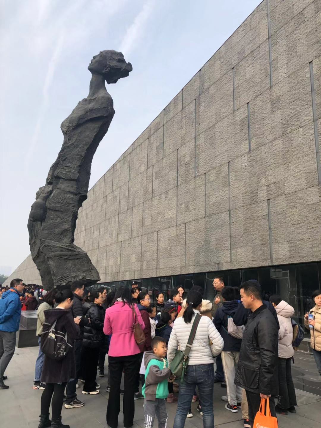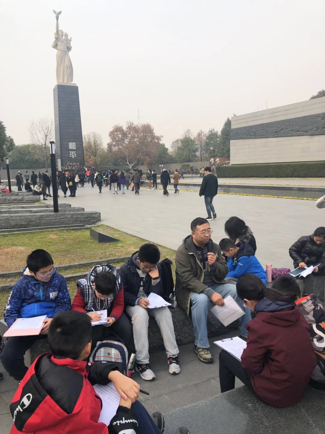 凝重的广场,沉重的色调,压抑的雕塑……在广场中排队等候进馆,小朋友们仿佛感受到1937年那些不幸的日子,多少无辜的生命在此陨落。大屠杀史实展,从步入展厅那一刻,迎面看到的“12秒”流星,30万的同胞每12秒就有一位遇害;1213张大屠杀幸存者的照片墙,仿佛他们仍然在凝望着这段历史。整个展厅,小朋友们在仁和老师的带领下看到南京的反抗与沦陷、大屠杀的暴行以及对罪行的调查与审判……从黑暗走向光明,从邪恶走向正义。