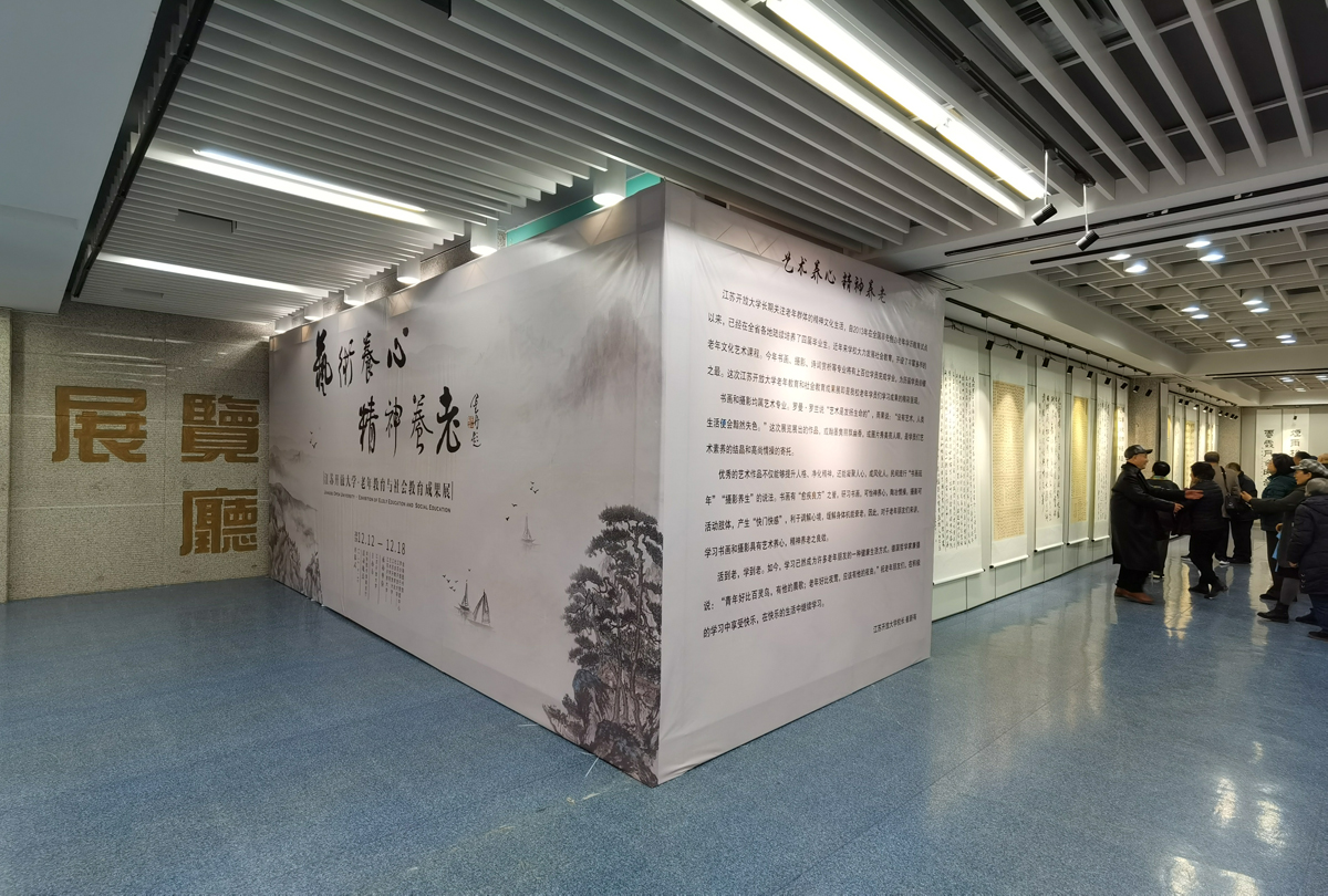 2019年12月12日-18日,“艺术养心精神养老”江苏开放大学老年教育与社会教育成果展在金陵图书馆举办。此次展览由江苏开放大学主办,金陵图书馆、江苏开放大学艺术学院等承办,展出江苏开放大学老年大学生的80余件书画作品,供市民读者观赏。展览中翰墨隽丽的书法、国画作品,秀美亮眼的摄影作品,让参观展览的市民纷纷赞叹老年学员们的艺术素养和高尚情操。