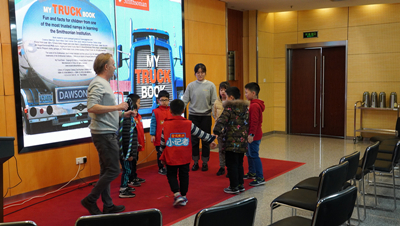 接下来,五彩缤纷的PPT在老师的热情讲解下徐徐展开,包括消防车、混凝土车、垃圾装载车等各式各样的大卡车跃入了孩子们的眼帘。同时,老师用自己纯正的英式口音,一字一句教孩子们发音与朗读的正确方法,抑扬顿挫中,朗朗书声中,小小少年在逐渐成长。