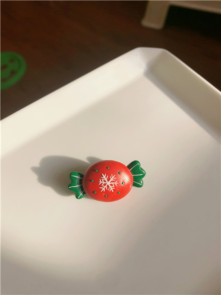 泡泡眼老师从如何和泥开始一一示范,例如红色,如果要让它更加浓郁,要在正红的粘土中掺入酒红色。而花环上不同颜色的冬青叶,则是分别掺入深绿和黄色。要反复将粘土在手心中揉搓,直到颜色完全均匀。粘土准备完毕,就要开始塑形。去年的粘土课,我们是使用了小鹿模具制作,今年,泡泡眼老师要带大家挑战一下徒手捏。虽然看上去这三枚形状各异的小胸针都不甚复杂,但是一旦开始制作就会知道,没有模具的辅助,仅凭两只手,难度可是不小。更何况小小的胸针上面那些细腻的装饰,黄豆粒大小的圣诞袜、小米粒大小的装饰波点,还有细的只要稍微用多一点点力气就会断的雪花线条,虽然“虐”,可是大家还是一边大呼,一边反复努力尝试,可以说是“虐并开心着”。