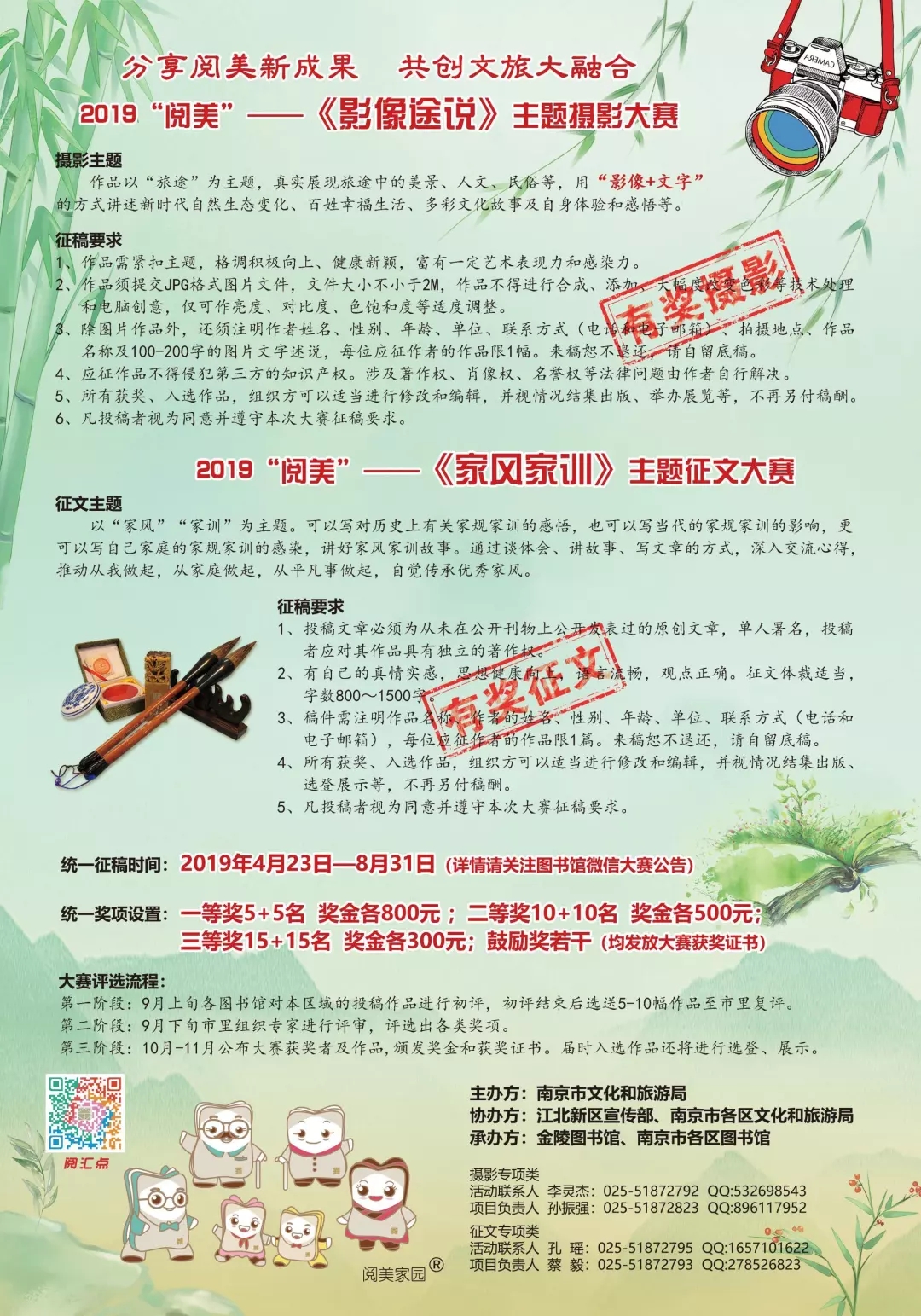由南京市文化和旅游局主办,在江北新区宣传部、南京市各区文化和旅游局的支持下,金陵图书馆联合各区公共图书馆共同举办2019“阅美”系列活动之《影像途说》主题读者有奖摄影大赛已圆满结束。自从4月23日启动预热以来,吸引到了全市读者及摄影爱好者参与投稿,用快门记录下旅行中的好奇、思考与观察,共同探索光影秘密。