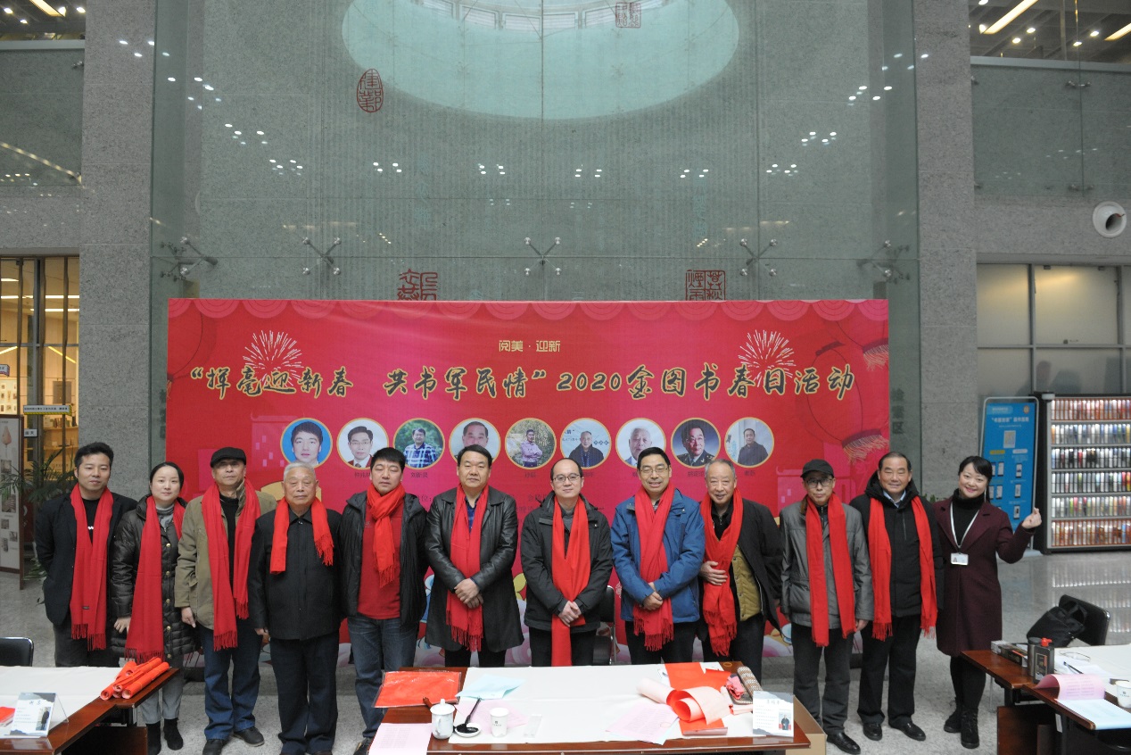 中华百节“年”为首,图书馆里过大年。1月18日,2020年庚子鼠年到来之际,金陵图书馆2020“金图书春日”系列活动携手南京市退役军人事务局、南京广电书画院、金陵瞭望杂志社、兴隆计生协、乐山路社区计生协、幼嘉森林儿童教育发展中心等多家单位,以现场挥毫、展览、故事会等动静结合的联动形式共同举办。