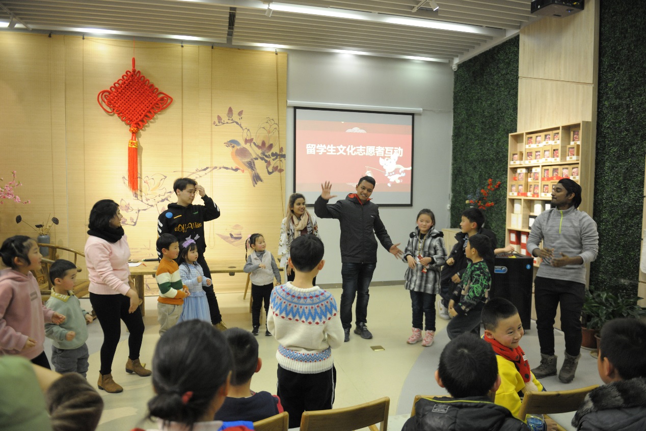 其中还特别设置了 “知识讲解”环节,馆员“羊羊”姐姐在每一个小朋友讲完故事后,都有一段言简意赅的知识讲解,把故事中涉及到的传统文化知识点专门提炼出来为大家精讲,起到了画龙点睛的作用。还有“你说我猜”、“互送祝福”、“现场抽奖”等环节,增加了趣味性、互动性。来自南京工业大学海外教育学院外国留学生朋友还为小朋友带来了一个充分欢乐的英文儿歌唱跳节目,用中外融合的方式共同喜迎新年。
