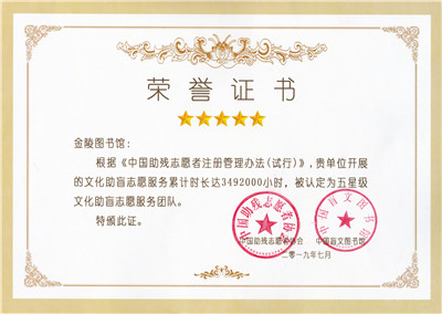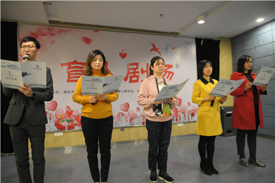 “朗读者”公益助盲活动由金陵图书馆联合南京新闻广播共同创办于2012年,立足南京,面向全省,辐射全国,走向世界,积极倡导全民阅读、文化助残。活动以“解决盲人阅读最后一公里”为宗旨,常年为盲人朋友录制有声读物、开展读书会,并组建“朗读者”艺术团,打造“盲人剧场”,立足于盲人朋友的阅读需求,依托金陵图书馆的馆藏资源,提供朗诵、故事、表演以及无障碍电影等有声阅读服务。目前注册志愿者万余人,服务江苏省全龄段盲人读者3万余人,持续受到国家、省市级媒体关注报道,并已取得品牌注册商标。