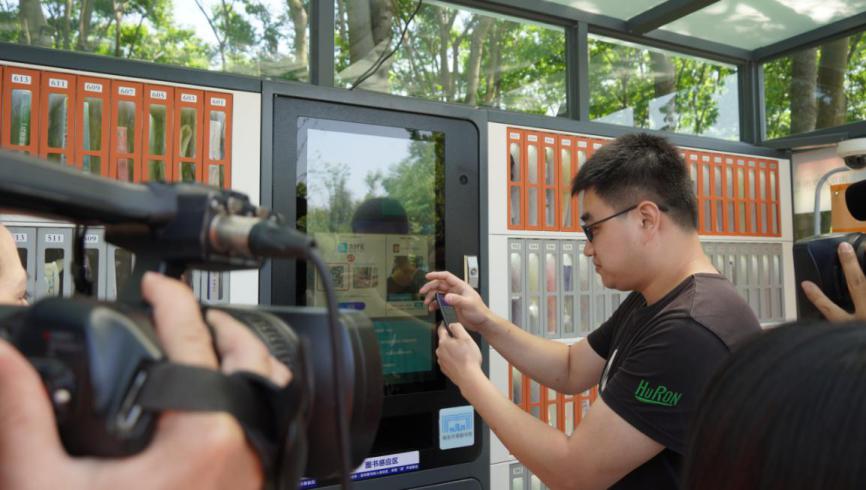 揭牌仪式当日,游客们已经在风景区的幕府登高广场上与金陵图书馆提供的信用智能借阅柜与文旅数字阅读机相遇,图书馆工作人员向他们热情介绍了其功能与使用方法。智能借阅柜能够实现公众凭个人“芝麻信用分”随时借阅柜内现有图书,市民也可在此归还网上借阅的南京共享图书馆图书。作为南京共享图书馆线下服务网点的最新成员,此批信用智能借阅柜还拥有一项“黑科技”——“刷脸借书”,让图书借阅更加高效安全与有趣。而文旅数字阅读机则可以提供近万册电子图书、期刊、报纸等扫码数字阅读服务,今后还将结合景区特色,向公众展示定制开发的旅游类专题资源,是数字阅读资源进景区的主要服务载体。如此,不仅使得徜徉于山水间的游人在驻足休憩时有书相伴,更为当地居民提供了借阅书籍的便利渠道。