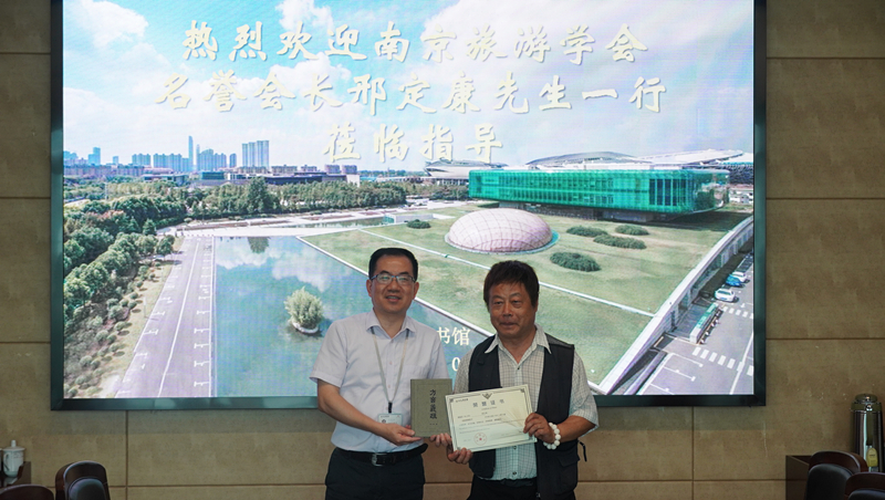 随后,邢定康会长一行向金陵图书馆捐赠了旅游主题系列书目,焦书记代表金陵图书馆表示感谢,并授予证书、合影留念。