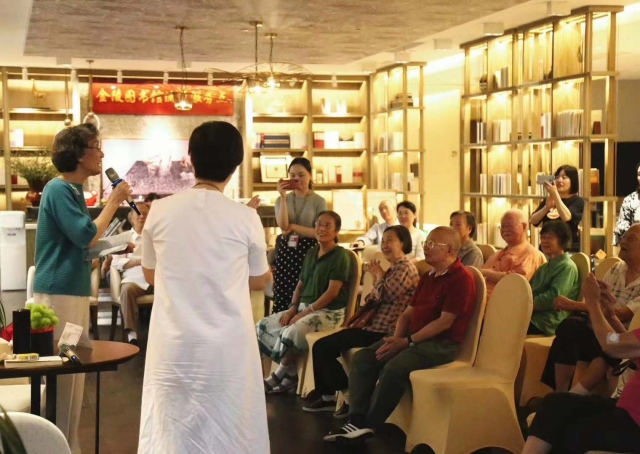 7月18日下午,在金陵图书馆君颐东方国际康养社区服务点,著名主持人文岚为社区读者们带来了一场以“乘风破浪,穿越人生海海”为主题的读书会。