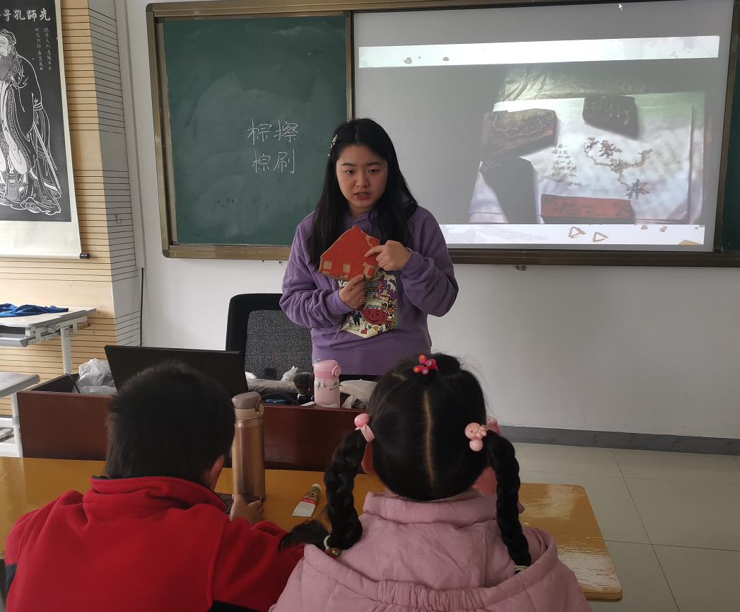 课堂上,老师从“中国古代四大发明”说起,循序渐进地带领同学们了解了雕版印刷的由来和变迁。通过丰富的课件,让同学们认识了“雕版印刷”与“饾版印刷”。同时,大家通过刷印方式的实操对比,也深入了解了二者的区别。