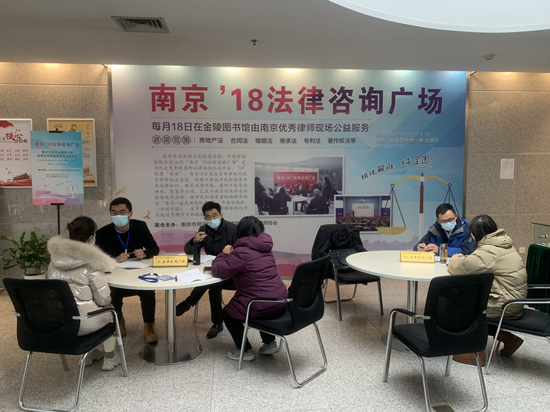 2020年12月18日上午9:30,“南京18’法律咨询广场”咨询活动如期举行。在金陵图书馆一楼阅读休闲区,来自江苏中盟律师事务所的律师现场就市民关心的房产、婚姻家庭、知识产权等方面的问题,接受了咨询并现场解答。
