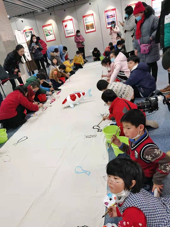 2021年1月3日,为弘扬江苏渔业文化,提高锦鲤品种在广大公众中的知名度,金陵图书馆联合江苏省农业农村厅直属工会联合会、江苏省淡水水产研究所及江苏省水产学会,在金陵图书馆一楼展览厅举办“与鲤有约”系列之“锦鲤”绘画体验活动,现场共有50位小朋友报名参加。