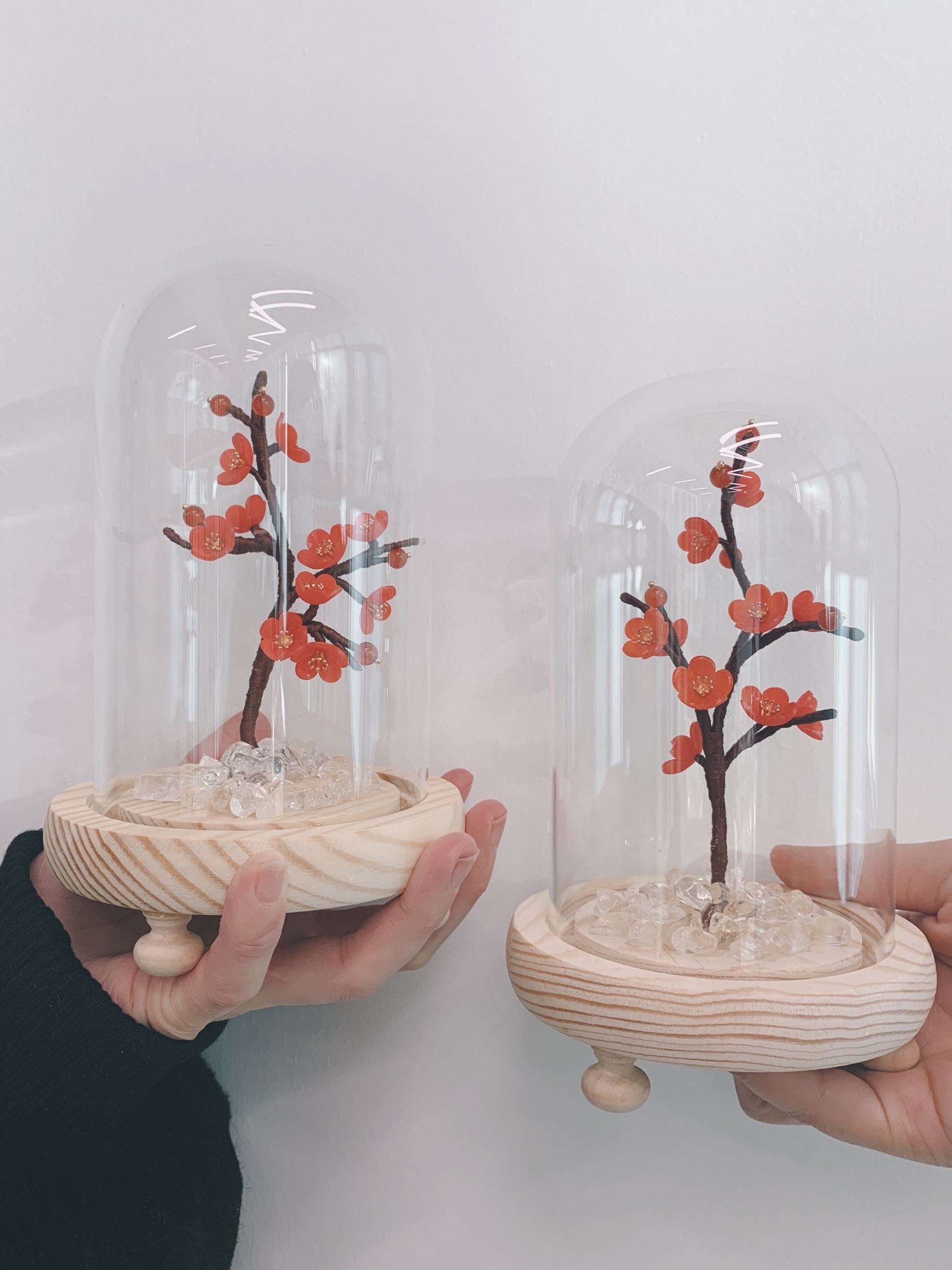 作为2021年开年的第一场活动,我们没有选择与以往相类似的饰品,而是做了一枝旁逸斜出的轻灵梅花。这样小摆件,无论是摆在书桌案头,还是每天的第一缕阳光都会光顾的窗前,都是极美极风雅的。古人咏梅的诗词数不胜数,如“江南无所有,聊赠一枝春”,又如“故人早晚上高台,赠我江南春色、一枝梅”,这些流传千古的佳句,读来无一不令人神往。仿佛在这只字片语之间,已嗅到雪后空气中梅花清冽的香气。