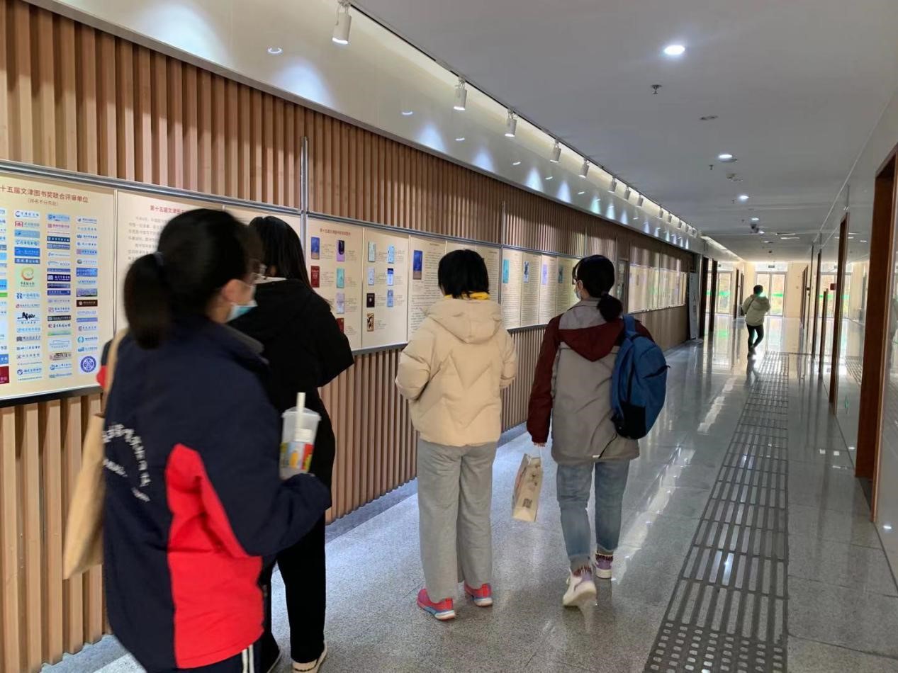目部和图书借阅部联合举办的文津读书沙龙巡讲视频展播在金陵图书馆一楼视听室全天候播出;借助支付宝信用网借平台和图书借阅部一线服务阵地,采访编目部推出“阅荐•悦见” 第三十期——第十五届文津图书奖获奖图书展,实现了线上线下的融合创新;在一楼大厅举办的第十五届文津图书奖获奖图书巡展,以宣传展板的形式吸引了许多读者的观看。