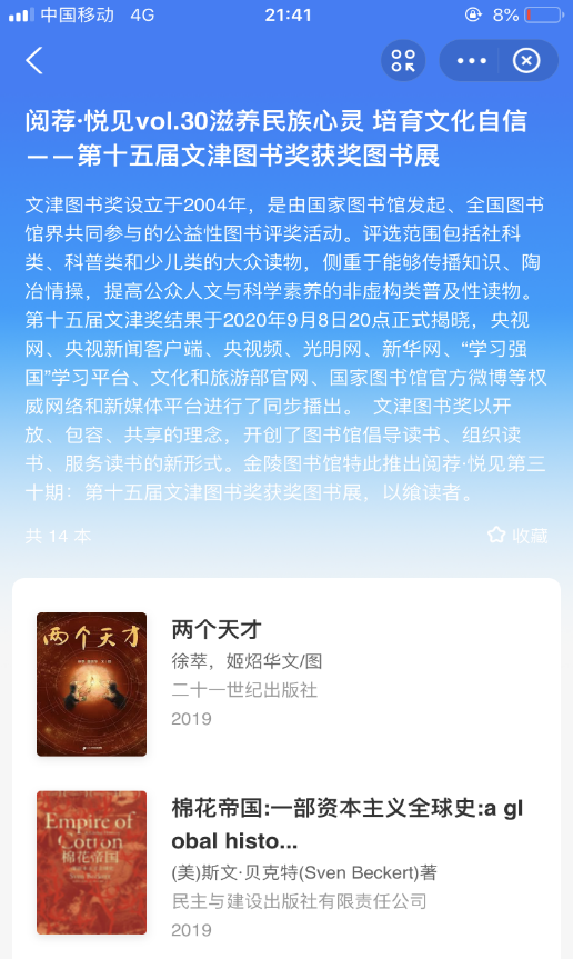 鼓楼区图书馆的的文津奖获奖图书巡展