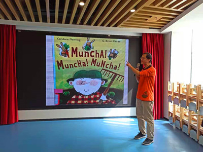 本期绘本的主角是三只机灵可爱的小兔子。麦格雷利先生的菜园里种着鲜美的胡萝卜和各种各样的美味蔬菜。每当月亮升起后,三只小兔子们就会翻越栅栏享用美味的胡萝卜。麦格雷利先生绞尽脑汁和兔子们斗智斗勇。他给菜园装上铁网,可是兔子们有无比锋利的铁剪刀;他在菜园周围挖了一条地沟,还灌满了水,可是兔子们会游泳;他为菜园建了个密不透风的城堡,可是兔子依然有办法混进菜园。麦格雷利先生气炸了,可是又能怎么办呢?三只聪明的兔子为了美味的胡萝卜,选择斗争到底。最后麦格雷利先生改变了想法,他主动和兔子们分享了蔬菜,并和兔子成了好朋友。本书内容生动有趣,情节一波三折,结局温馨可爱。绘本阅读结束后,Frank老师和家长们分享了绘本阅读中的小技巧。很多家长听完后纷纷和老师交流互动,现场气氛积极热烈。