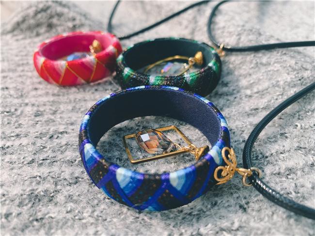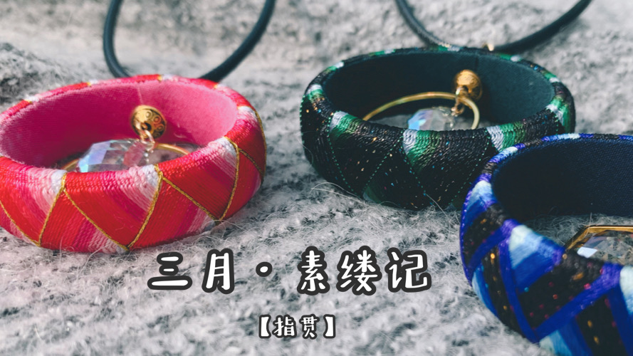 现在的指贯已经不再像从前那样仅仅作为一件生活用品出现,巧手的艺人们发挥他们的奇思妙想,在小小一枚指贯上以线为笔,绣出精妙美丽的图案。完成后的指贯可以直接当成戒指佩戴,也可以做成胸针、耳坠、丝巾扣等饰品,给生活增添一点小小的优雅细节。