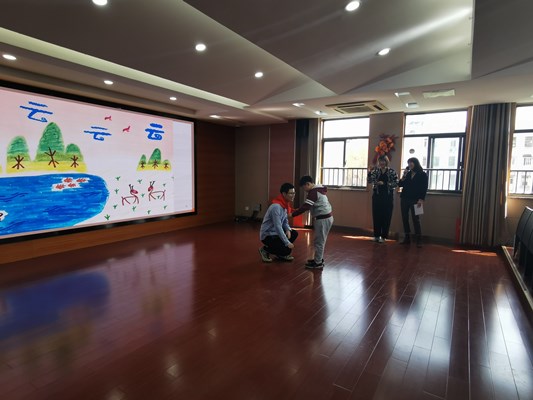 开课前,建康路小学四年级的学生代表上前为高老师佩戴红领巾,感谢高老师前来授课。高老师以一幅小朋友的的画开课,讲述汉字演变的历史和过程,同时积极的和小朋友互动,提问一些知识点,比如“汉字从甲骨文开始还有哪些字体”,“同学们认为最早的汉字是什么”,“汉字是先有文字还有西安有语言的”等等问题,不禁让人惊讶于四年级小朋友的知识面,一一作答且能答到点上。时间在渐渐的流逝,可高老师和小朋友们的热情却丝毫没有减少,台上板书授课,台下书本记录,因为这堂课,让小朋友受益匪浅。