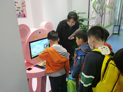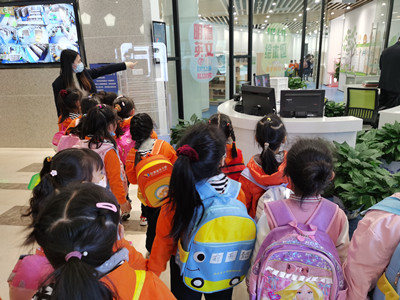 到馆的小朋友分成了两组,少儿工作部的老师们首先为小朋友们讲解在图书馆参观的注意事项——参观过程中要保持安静,有问题举手问老师等等。接下来,老师们带领小朋友们分别参观了图书馆中庭景观“智慧的水滴”、图书借阅室、金图文创、办证处、阅?荐空间、视障人士阅览室、少儿借阅室和低幼绘本区,并且为小朋友们一一讲解这些区域的用处和规则。在参观过程中,老师们还向小朋友们演示了借书机、还书机和图书消毒机的用法。看完之后,小朋友们争先恐后地举手向老师示意希望自己也能尝试着操作。最后,在低幼绘本区,小朋友们尽情翻阅起绘本。