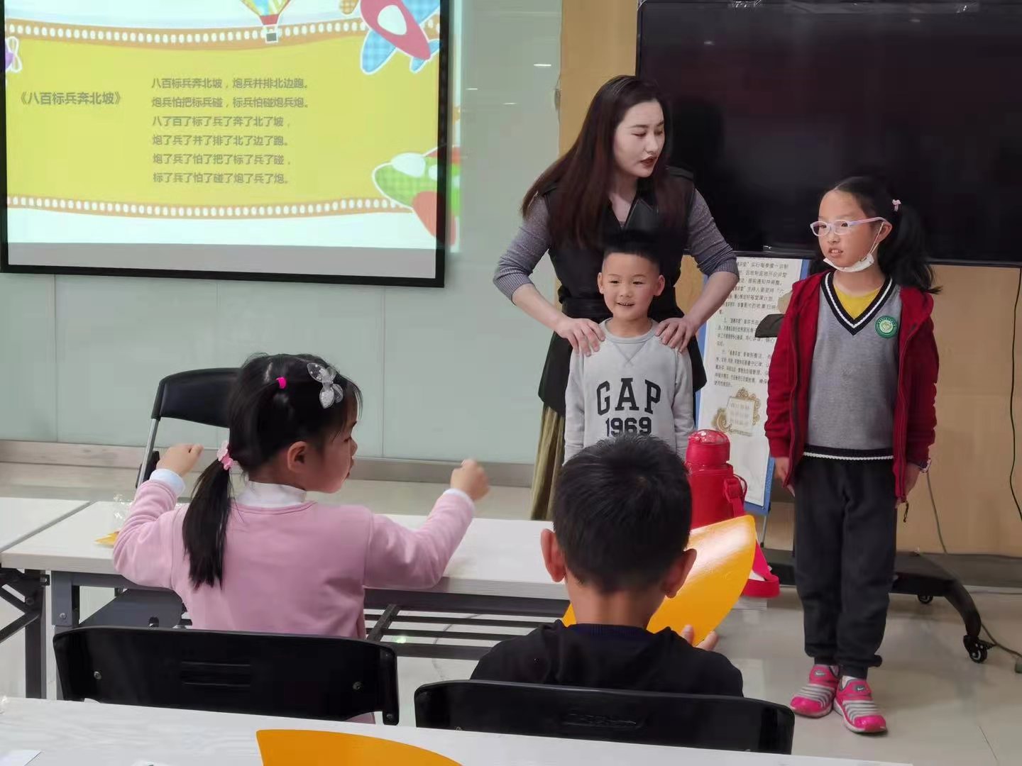 首先,老师给小读者们讲解了表演活动中主持人和朗诵者应有的站姿与坐姿,以及如何开嗓、共鸣、调息、口部训练等基本功的方法和技巧。从《白石塔》、《八百标兵奔北坡》、《画凤凰》等绕口令训练开始,层层递进,慢慢提升难度。随后,《祖国赞》、《祖国,我爱你》等弘扬爱国主义情怀的儿童诗歌,在老师的一句一字的教学下,小读者们朗读时字正腔圆、抑扬顿挫、豪情四溢。最后,在《我和我的祖国》美妙音乐的伴随下,在老师和家长的带领下,小读者们怀着满腔的热情,声情并茂地演绎了《党是太阳,我是花》这个节目,赢得了在场其他读者的阵阵欢呼与掌声。