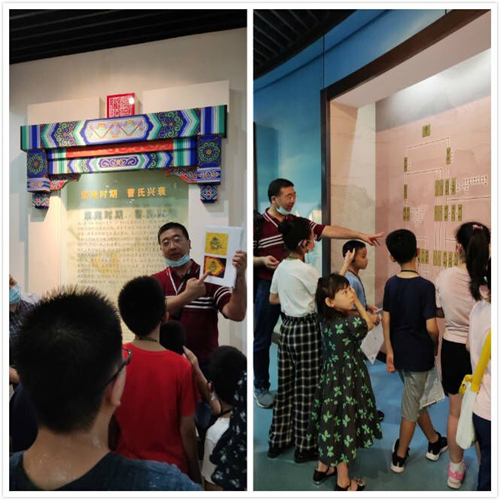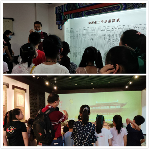 走入展厅,通过仁和老师的讲解,我们了解到:江宁织造府是文学巨擘曹雪芹出生的地方,曹雪芹的曾祖父、祖父、父亲和叔父三代四位人都担任过江宁织造府的府尹。而今天的江宁织造博物馆就在当年的遗址上重建而成,由著名设计师吴良镛设计,致力营造“三山半络青天外,二水中分白鹭洲”意象,是现代建筑的语言和传统园林建筑结合的经典之作。