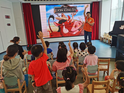 6月26日下午的“小水滴”英文读书会还没开始,便有30多名小朋友围在小舞台前,等待Ian老师的到来。两点三十分,读书会正式开始,本期读书会Ian老师为小朋友带来经典英文绘本《The lion king 1 1/2》。