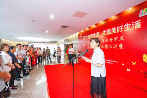为庆祝中国共产党100周年华诞,2021年6月30日,“爱党爱国爱家,共建美好生活”——百幅家庭书画作品巡展活动在金陵图书馆展览厅正式启动。