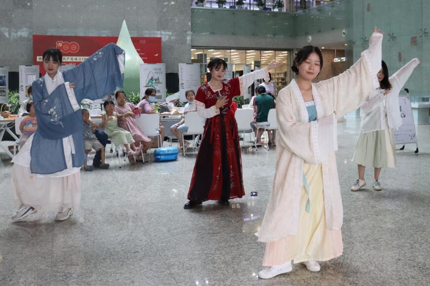 “天子常服,汉服受之秦”,中国传统文化的博大精深,展现出的文化内涵,让我们叹为观止。2021年7月16日,金陵图书馆携手中国药科大学国学社在一楼大厅开展了为期三天的“纸墨金陵”系列活动,演绎了一场精彩的国学盛宴。