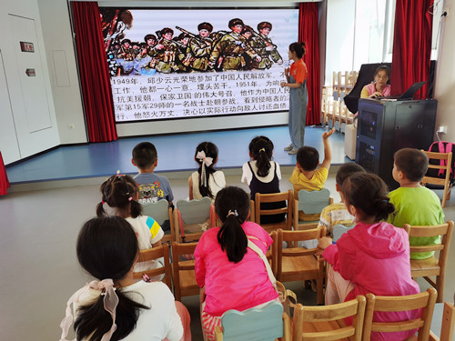 7月20日下午2:30,小桔灯故事会和小读者们准时相约金陵图书馆少儿绘本区小舞台前。本期故事会,来自南京晓庄学院的志愿者老师为小读者们准备的故事是《烈火英雄邱少云》。