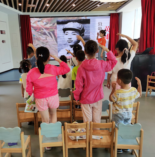 活动的最后,老师们带领小朋友们进行一次模仿演练——我是潜伏者。老师背对着小朋友,当老师转身的时候,作为“潜伏者”的小朋友们必须一动不动。通过这样的小游戏,让小朋友们感受潜伏战士的辛苦。