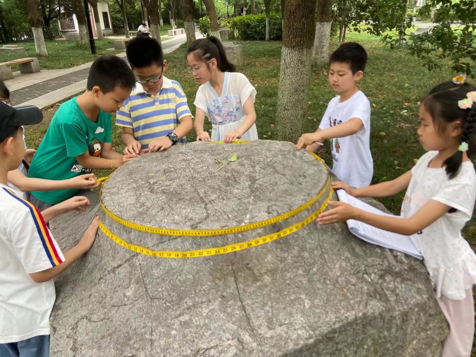 经过培训后的小神探,根据金陵图书馆馆藏书《明朝都城》很快修复了一张被污损的大明皇城宫城地图。并根据自己学到的本领,很好地处理了一起外邦来访使节的“住宿”纠纷。刚刚处理完这边的住宿纠纷,那边又有两个外邦商人因为讨论石础的重量大打出手。小神探们又接到了一个新的任务,要想办法尽可能接近地估算出石础的重量。寻访团的帅帅老师带着小神探们想用这把秤称出石础的重量,被小神探们无情“嘲笑”果然读不过六年级。不过,学学称秤的本领倒是不错的!接下来,摆在大家面前最现实的问题来了,难道真的要用这把小秤去称石础的重量?小神探们可没那么傻,他们脑洞大开,想出了各种各样的办法。有的说,我们可以学学曹冲称象啊;还有的说,我们可以找一些大小形状重量一样的小石块,称出每个小石块的重量,然后把它们堆在一起,堆成石础的形状,看看用了多少个小石块。在用每个小石块的重量乘以块数,就能得到石础的重量了。小神探们真是不得了,一来二去,就已经快揭示出密度的真相了!话不多说,我们动手实践一下吧!不算不知道,一算吓一跳,别看这石础不算大,可重量到最后都是按吨计的。这么重的石头,古人是怎么开采、怎么从石场运出,它又有什么作用呢?肆时读书的张渔老师,解答了小神探们的疑问。
