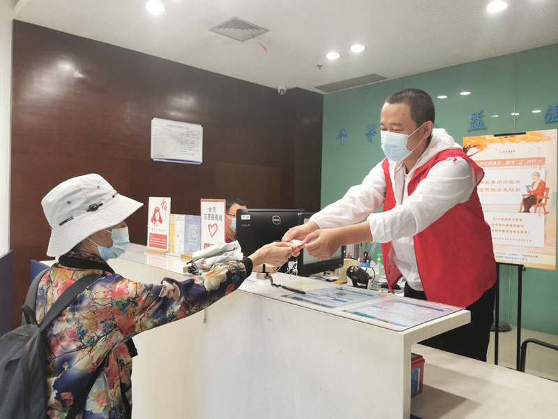 活动自2021年重阳节起,长期为60周岁及以上人群免押金办理图书借阅证,办理过图书借阅证者可进行退还押金服务,共同为长者送上阅读关爱。重阳节文化惠民活动预告一经发布,就吸引了众多老年读者的到来。他们循着海报来到办证处,或是咨询活动的,或是新办证,更换敬老证,也有带着亲友来的,都是热爱阅读的读者。此次金陵图书馆敬老证的卡面有全新的设计,金黄的封面既代表着秋日的灿烂丰收,也代表着人生的精彩丰满,暖黄色调象征着文化温暖人心。