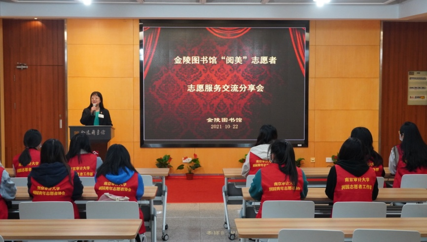 2021年10月22日下午,金陵图书馆“阅美”志愿者交流分享会在金图多功能厅顺利举办,来自南京审计大学润园书院的20位志愿者分享了志愿服务的心得体会。
