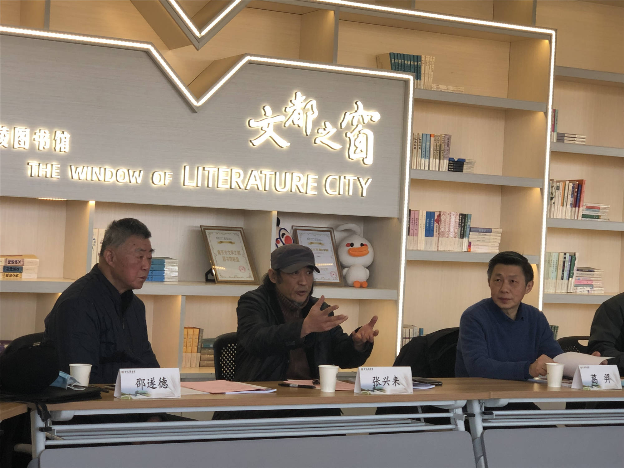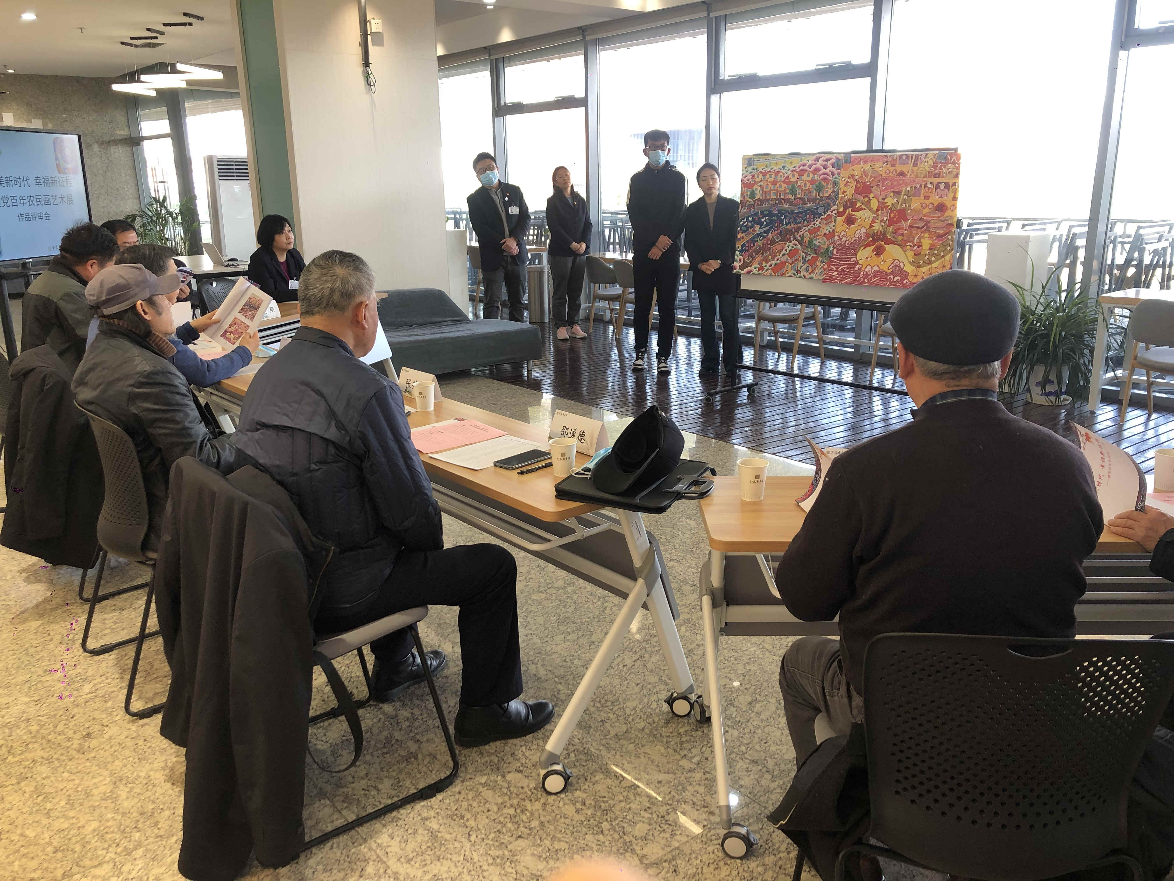2021年12月29日下午,“阅美新时代,幸福新征程”——建党百年农民画艺术展作品征集活动专家评审会在金陵图书馆文都之窗顺利举行。南京市文化和旅游局艺术处处长葛羿,江苏省美术馆副馆长、一级美术师张兴来,南京艺术学院图书馆馆长陈亮,金陵图书馆馆长焦翔,江苏省农民书画研究会会长张化聪,江苏省农民书画研究会名誉会长邵遂德,江苏省农民书画研究会副秘书长、著名画家刘禾生作为评委出席了本次评审会。评审会由金陵图书馆副馆长杨峥主持,经由7位专家评充分研议,于156幅参赛作品中评选出优秀作品40幅,入围作品60幅。