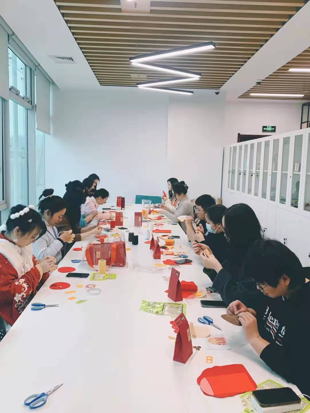 对于是用快捷便利的黏贴,还是一针一线的缝制,我想,手工坊一直以来都是秉持着“慢下来”的理念,在如今飞速前进而忽略了很多生活中的悠然美好的这个时代,我希望能够带给大家的是放松下来,享受慢节奏的一小段时光,所以我们选择了后一种制作方式。大家一边缝着红包,一边聊聊天,感受着即将过年的轻松愉悦