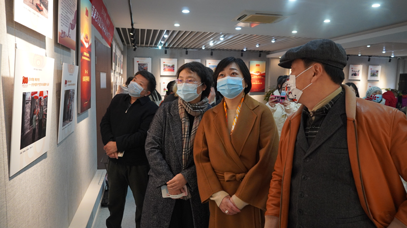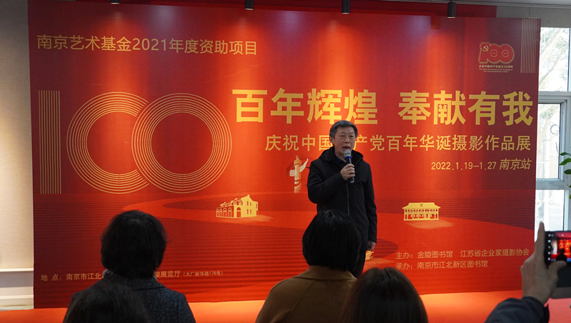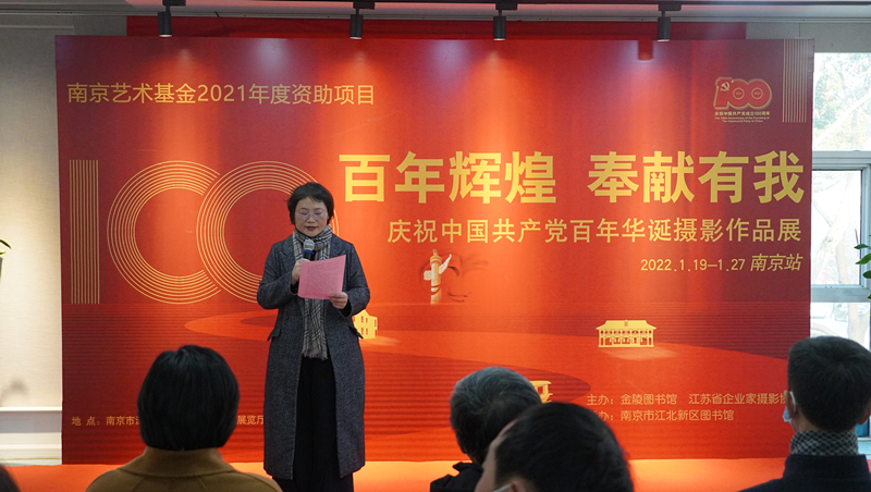 2022年1月19日上午10点,由南京艺术基金资助的“百年辉煌 奉献有我——庆祝中国共产党百年华诞摄影作品展”巡回首展(南京)在江北新区图书馆开幕。此次展览,在南京艺术基金管理办公室的指导下,由金陵图书馆、江苏省企业家摄影协会主办,南京市江北新区图书馆承办。出席此次开幕式的有:南京市文化和旅游局艺术处处长、南京艺术基金管理办公室主任葛羿,南京市文化和旅游局艺术处副处长、南京艺术基金管理办公室副主任饶泽安,金陵图书馆副馆长杨峥,江苏省企业家摄影协会名誉主席朱卫华,江苏省摄影家协会新文艺群体工作委员会秘书长蒋澍,南京江北新区摄影家协会主席田鸣,南京艺术学院图书馆馆长陈亮,南京市江北新区图书馆馆长陈欣等。金陵图书馆活动服务部全体馆员参加了开幕式。