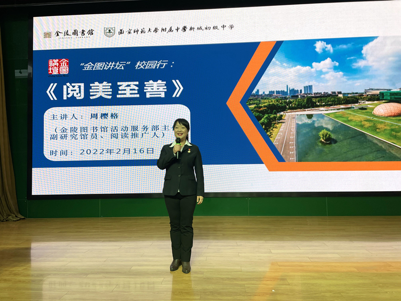 农历正月16的下午,南师附中新城初中的同学们迎来了浓浓年味里的书香。金陵图书馆活动服务部主任、中国图书馆学会阅读推广人、南京市首批“对外文化交流使者”周樱格老师为全体初一初二的同学奉献了一场题为“阅美至善”的阅读报告。