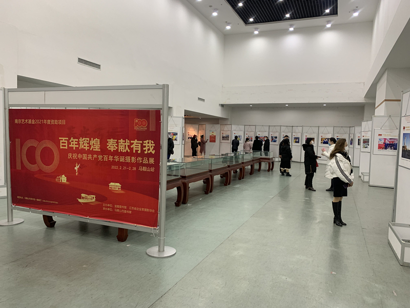 2022年2月21日上午10:30,继江北新区首展之后,由南京艺术基金资助的“百年辉煌 奉献有我——庆祝中国共产党百年华诞摄影作品展”都市圈巡展第二站马鞍山,在市图书馆一楼展厅开幕。