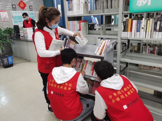 本次志愿服务,主要对馆内被借阅还回的图书进行整理。在一楼“志愿天地”进行了岗前通识培训,老师们换上了志愿者“红马甲”,跟随工作人员进入图书借阅区。接受现场培训了解图书馆各服务功能区域、管理员的工作流程、图书整理的操作流程。接下来,志愿者们开始对图书进行分类、整理、上架。大家分工合作,有的负责分类、整理,有的负责传送、按标签放回指定书架。红色的身影不断在书架间穿梭,推车上杂乱的书籍越来越少,书架上整齐摆放的书籍越来越多……经过三个多小时的工作,大家顺利地完成了此次志愿服务。