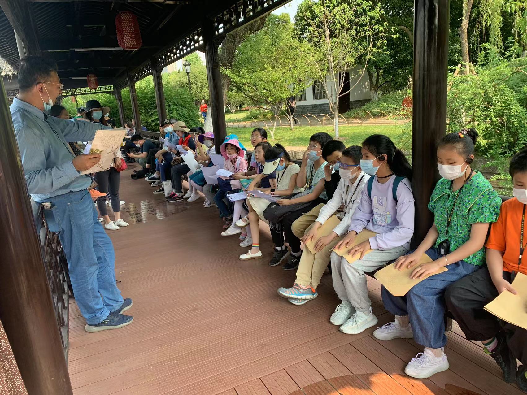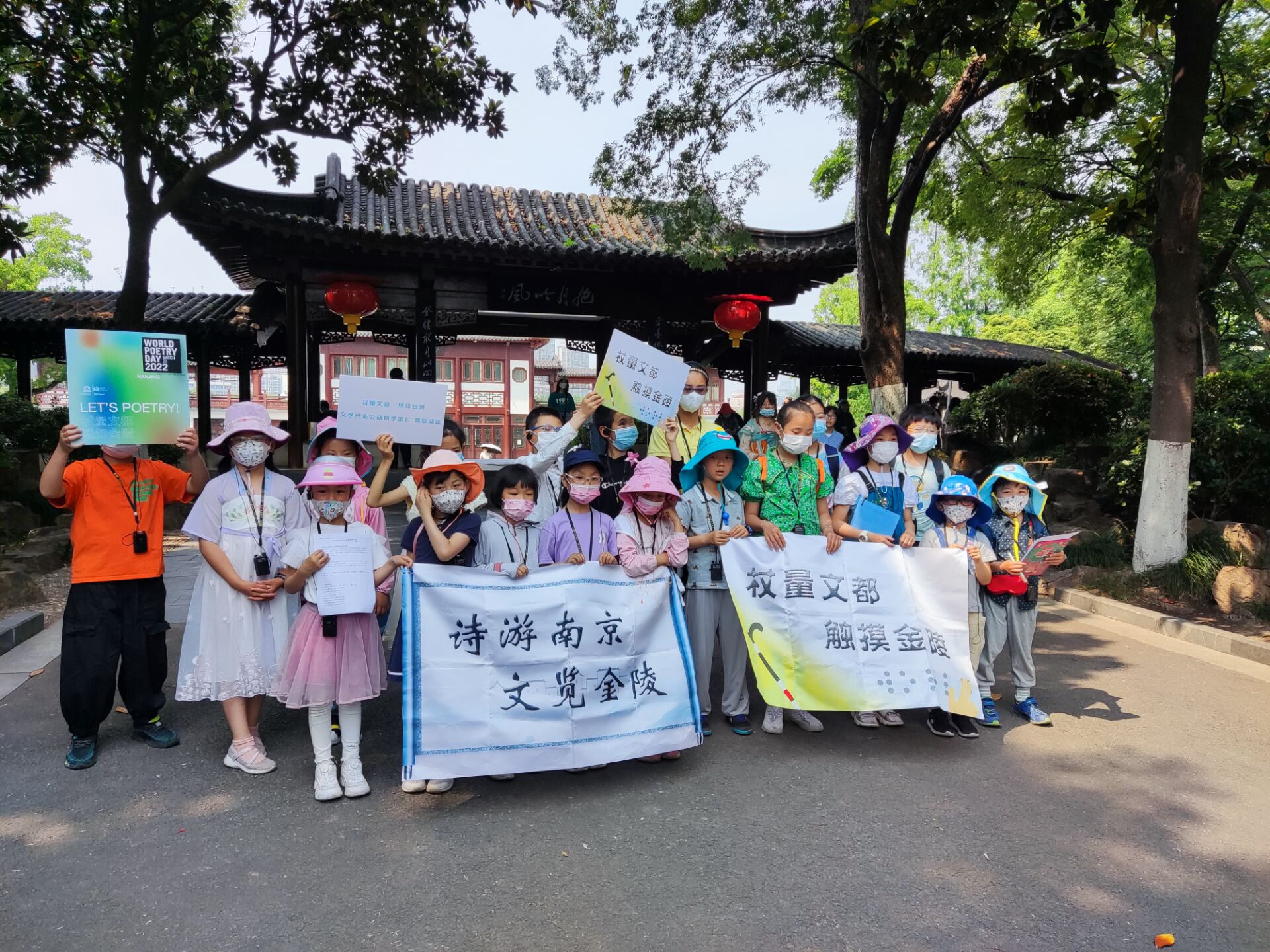 莫愁湖是南京主城区内仅次于玄武湖的第二大湖泊,有“金陵第一名胜”的美誉,景区内绿荫环绕、亭台楼阁、一步一景,是赏景游玩的好去处。初夏时节,莫愁湖万物生机勃勃﹑景色盎然,小读者们跟随文都宣讲人,漫步于莫愁湖的亭台水榭,沿途听着莫愁女的故事、莫愁湖的历史、海棠花的诗词,触摸时光留在莫愁湖中的痕迹,最后小朋友们围坐在草地上,跟着宣讲人一起诵读诗词,他们用手感知自然的气息﹑聆听鸟语人喧,共同了解文学里的海棠,感受诗词里的金陵。