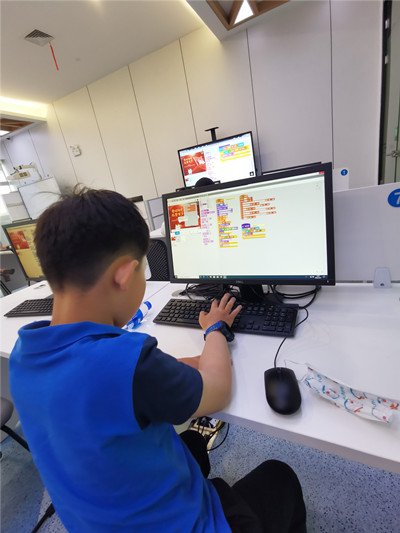 5月21日下午,少儿编程科技创新营公益课,在金陵图书馆二楼电教培训室进行。今天两节课的主题是“庆祝中国共产主义青年团成立100周年”,用Scratch程序创作出属于自己的编程作品。