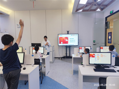 5月28日下午,少儿编程科技创新营公益课,在金陵图书馆二楼电教培训室进行。今天的课程主题依然是 “庆祝中国共产主义青年团成立100周年”,用Scratch程序创作出属于自己的编程作品。