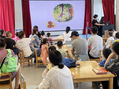 天气晴朗,许多小朋友们来到了图书馆。活动还未开始,少儿活动室的小舞台前坐满了小读者和家长们,期待已久的绘本共读开始啦!