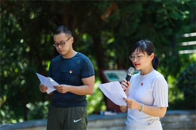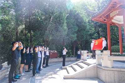 活动现场,大家仔细聆听了邓振询烈士生平事迹,金陵图书馆馆员代表张婕和甘旭扬深情朗诵了《邓振询画传》节选,生动展现了邓振询烈士坚定的理想信念和挚诚的家国情怀。随后,为了进一步表达对革命烈士的崇高敬意和深切缅怀,党员同志们重温入党誓词,瞻仰烈士墓并敬献了鲜花。