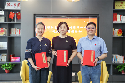 户外活动结束后,相关人员前往城建集团“城益书屋”参加“讲好红色故事 传承革命精神”党史书籍捐赠活动,旨在共同弘扬红色传统、传承红色基因,讲好红色故事。江宁区委党史办向金陵图书馆和江宁城建集团捐赠了多套《江宁红色经典连环画》,杨峥副馆长也在座谈中介绍了金陵图书馆“朗读者”等公益志愿服务项目,同时也深入了解江宁区 “城心城益”志愿服务与“书香国企”平台建设等公益志愿品牌情况,为今后深入合作奠定良好的基础。