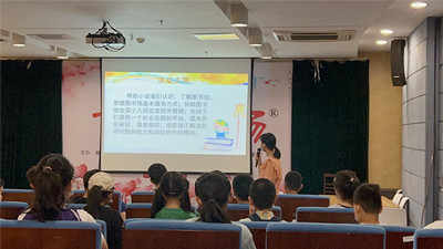 签到完成后,正式进入培训环节。此次“小义工”们的实践需要1、指导读者使用自助借还机;2、熟悉图书排架规则;3、图书分类整理上架;4、利用检索系统帮助读者查找图书;5、解答读者咨询;6、协助工作人员维护阅览室良好的阅读环境等。那么,如何能做好以上实践工作呢?在整个培训过程中,少儿工作部的李孝滢老师为“小义工”们做了详细的解答,同时还教授了大家一些解决问题的小诀窍。
