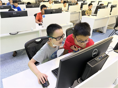 7月23日,主讲老师东南大学生物科学与医学工程学院教师、教育部课程与教材发展研究中心人工智能领域讲座专家夏小俊博士,在金陵图书馆二楼电教培训室为报名的小读者们带来了两节人工智能课程——《Code combat游戏式编程入门》:人们想要有趣且高效的学习,Code Combat就能很好地实现这一愿景。这是一款角色代入型编程游戏,在构建游戏世界的过程中,小朋友们可以自己选择一个职业,学习编写代码来解决问题,从而很好地培养孩子的逻辑思维能力。
