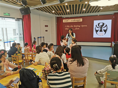 活动开始前,老师走到每一个小朋友身边,熟悉小朋友的名字,瞬间拉近了彼此的距离。脸谱,是中国传统戏曲演员脸上的绘画,已经被大家公认为是中国传统文化的标识之一。今天的活动在志愿者老师声情并茂地介绍京剧的历史故事中拉开序幕,一段京剧的视频片段欣赏之后,老师带着小朋友们一起认识了京剧脸谱中的红色脸谱、白色脸谱、蓝色脸谱、黑色脸谱、金色脸谱和绿色脸谱这六种颜色脸谱以及它们所代表的含义。在“抓娃娃,说颜色”的游戏环节,小朋友们踊跃积极,一个个都高高举起小手,大声地、流利地说出各种颜色对应的英文单词。在小朋友们的心中,喜欢的脸谱是什么颜色呢?活动的后半段,老师请小朋友们拿起画笔,发挥自己想象力,画出自己所喜爱的脸谱颜色,并请每一个小朋友勇敢地上台和大家一起分享自己所画的京剧脸谱。
