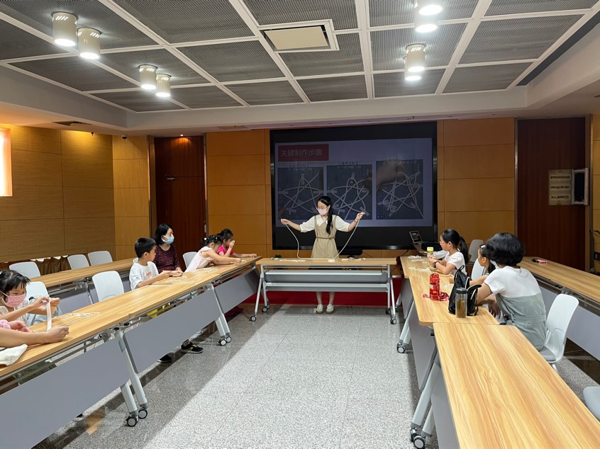 8月20日上午,“非遗学堂”系列课程在金陵图书馆一楼多功能厅开展了一次以中国绳结编织为主题的体验课程。
