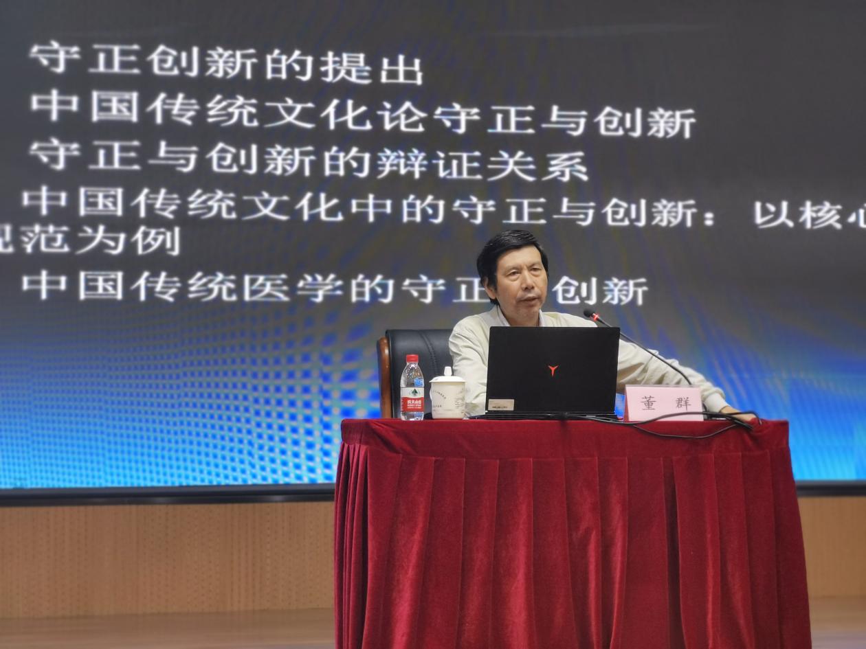 讲座中,董教授从守正创新的提出,中国传统文化论守正与创新,正与创新的辩证关系,中国传统文化中的守正与创新:以核心价值规范为例以及中国传统医学的守正与创新五个方面,深入阐述了讲座的主题。