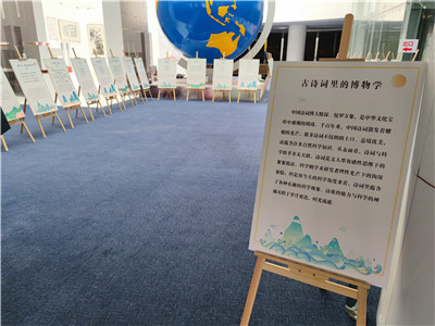 2022年9月28日上午,“古诗词里的博物学”展览在南京晓庄学院图书馆一楼正式开幕。本次展览内容从浩瀚的古诗词中撷取具有代表性的古代优秀诗词,从博物学的角度解读诗词中所蕴含的科学奥秘。