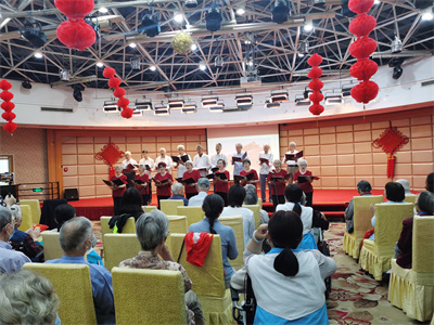 而老年朋友们也是多才多艺,平均年龄87岁,花费近1个月的时间进行排练和准备,有原创散文诗朗诵《公孙树之歌》,有男女声小合唱《我的祖国》《敖包相会》,有戏曲表演《京昆联唱》,洋溢出无限的欢乐和活力。最后大家在一首小合唱《夕阳红》的乐章中结束了活动,令人意犹未尽,满堂尽欢。